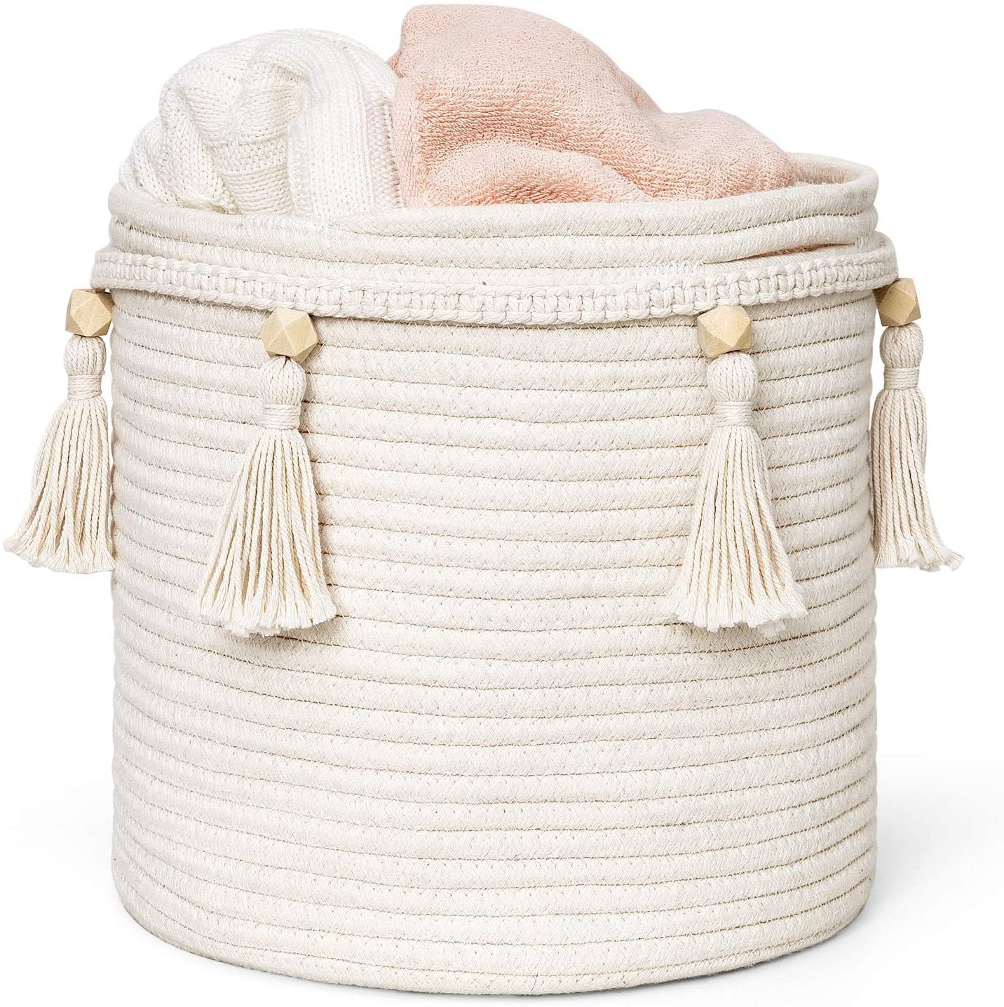 Amazonの人気の綿ロープ収納バスケット、タッセル編み汚れた衣類バスケット、折りたたみ式衣類家庭用雑貨収納バスケット