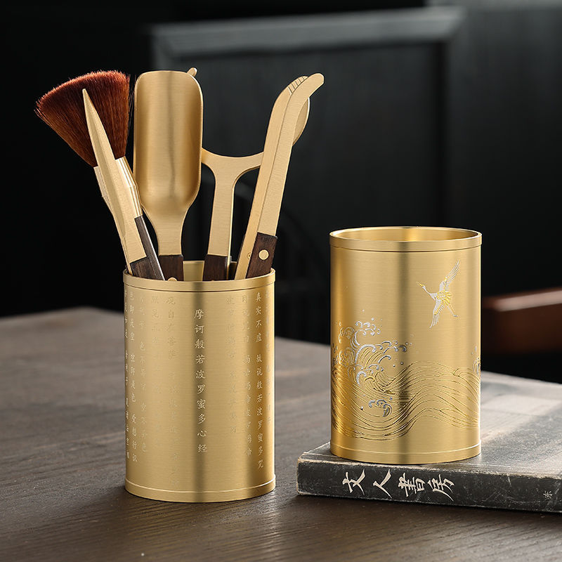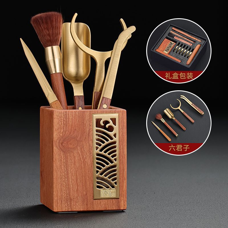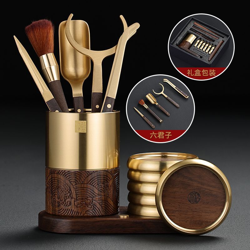 純粋な黄銅六君子セット家庭用黄銅泡茶道具カップマット茶刀カップホルダー茶道付属品