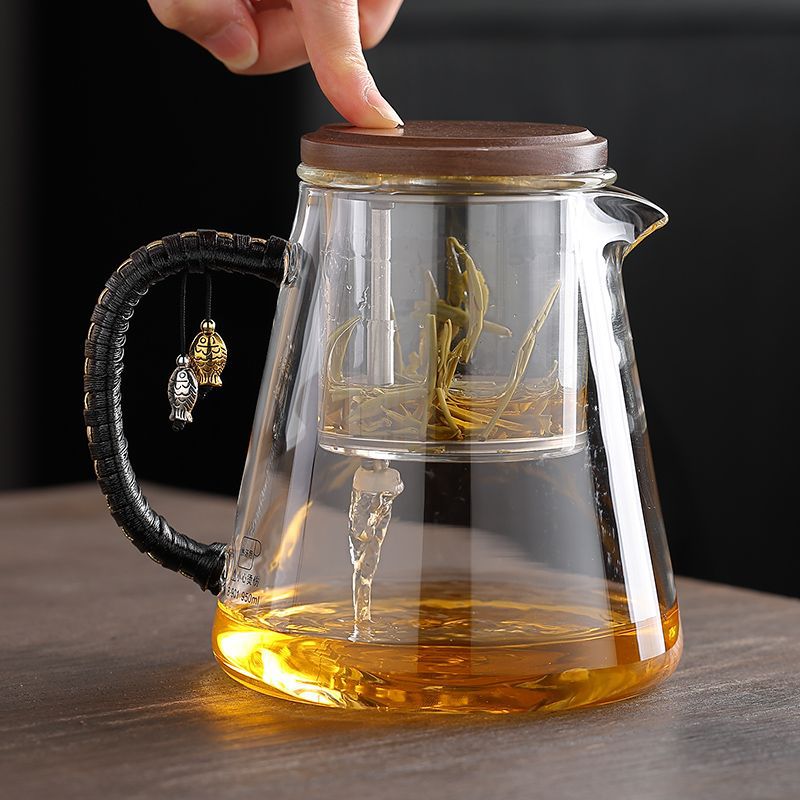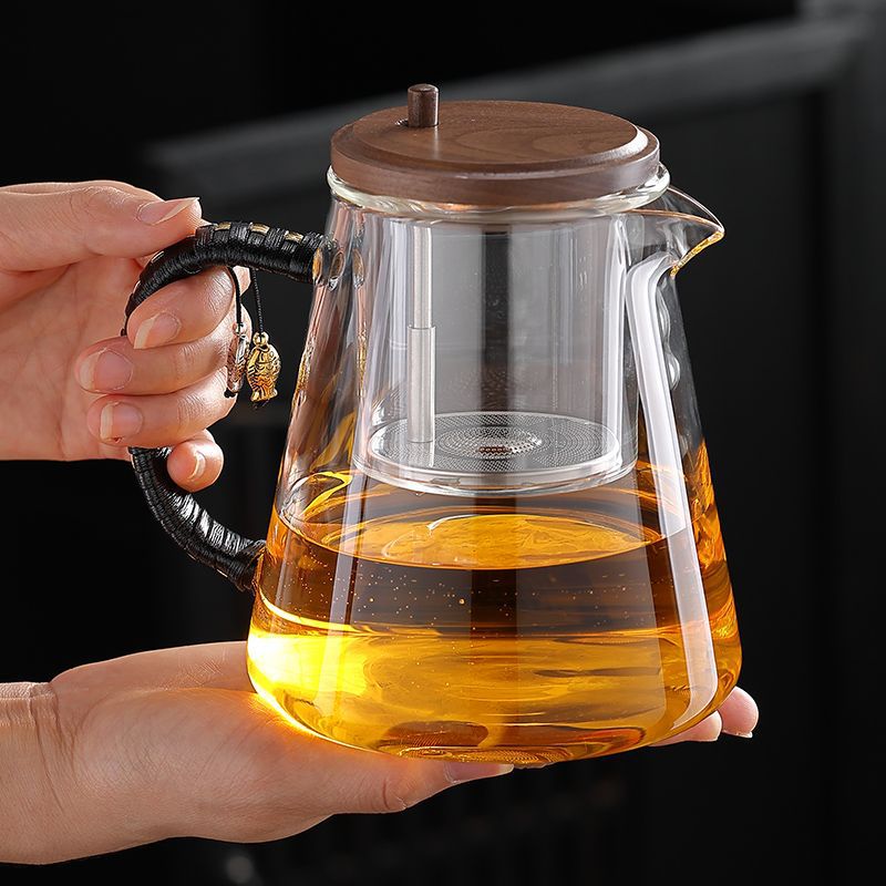 ウォールナットエレガントカップティーポットフルガラスライナー肥厚茶水分離フィルターティーカップ家庭用ティーセット