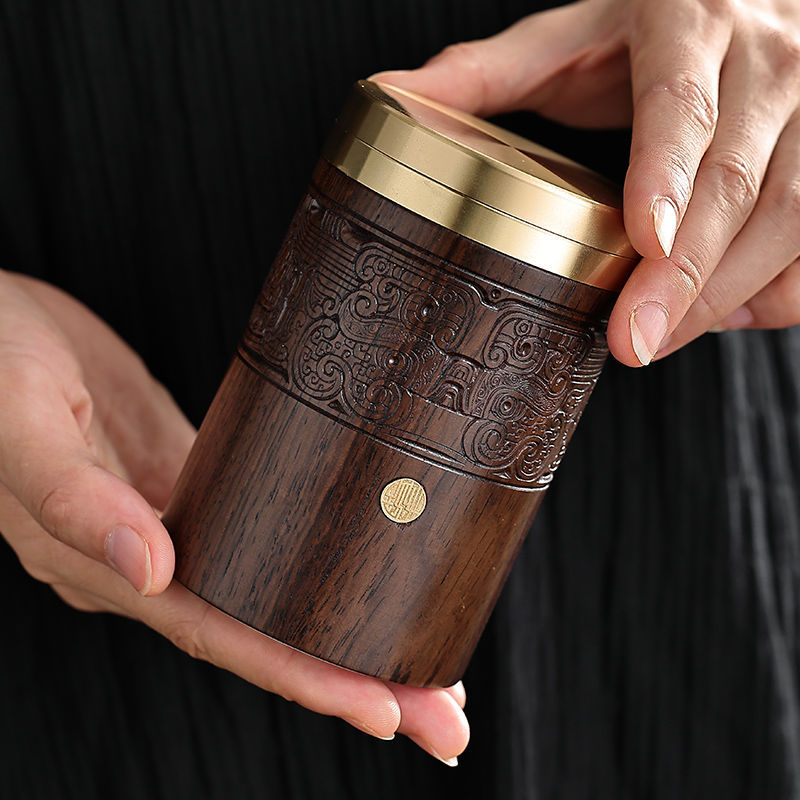 黒檀実木茶缶家庭用合金密封缶携帯旅行貯蔵茶缶トランペット緑茶紅茶保存茶缶