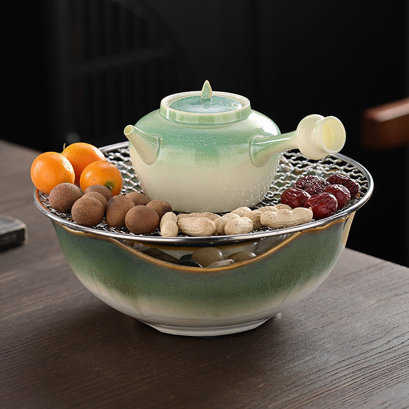 新商品の茶器を煮て梁のガラスを持ち上げてティーポットを煮てお茶の湯たんぽを入れます。全自動保温電気陶炉セットです。
