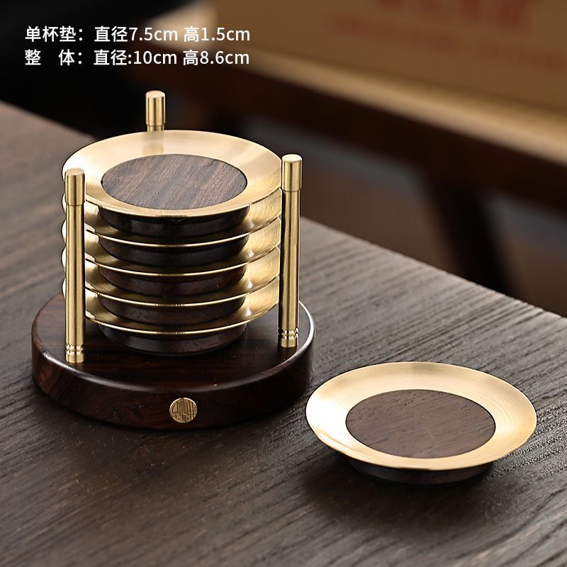 黒檀の木に銅の茶の杯を入れて軽くて豪華な高級感があります。