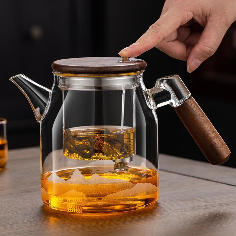 2024新型雲霧泡ティーポット全ガラス内胆一ボタン押圧フィルター茶水家庭用工夫茶器セット