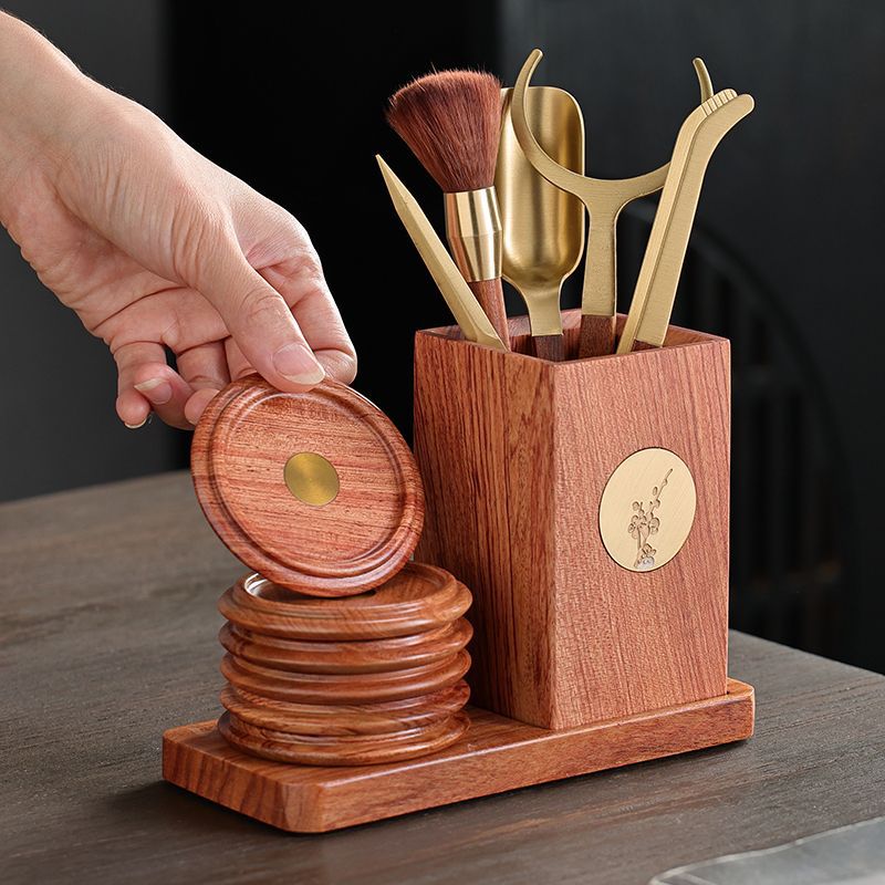花梨木の四角形のお茶はお茶の杯を支えて木の断熱のお茶のマットの茶道の工夫のアイデアの茶器の部品の杯のマットを持ちます。