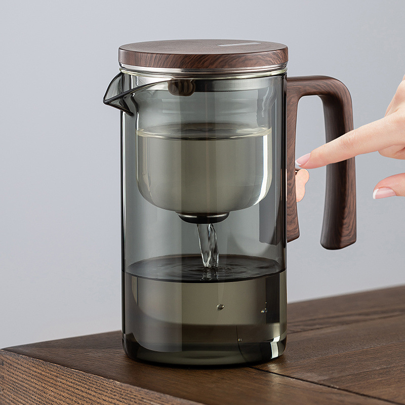 磁気吸引の逸な杯の泡のティーポットの2024の新型の無竿の1ボタンは水の高級な事務の茶器のお茶の分離のコップに入ります。