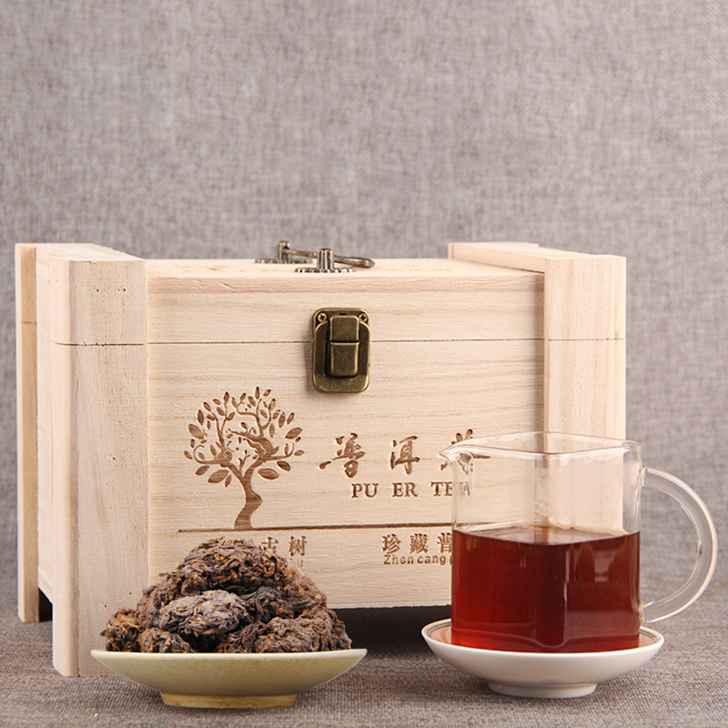 バッチ木箱八年乾倉プーアル茶老茶頭熟茶散茶金芽香茶葉の大量量1000g