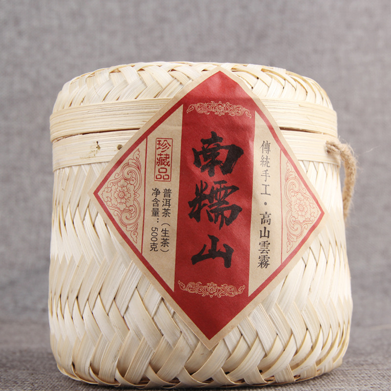 雲南プーアル茶生茶の伝統的な生普南モチモチ山古木500グラムのざるに茶の柱を詰めます。