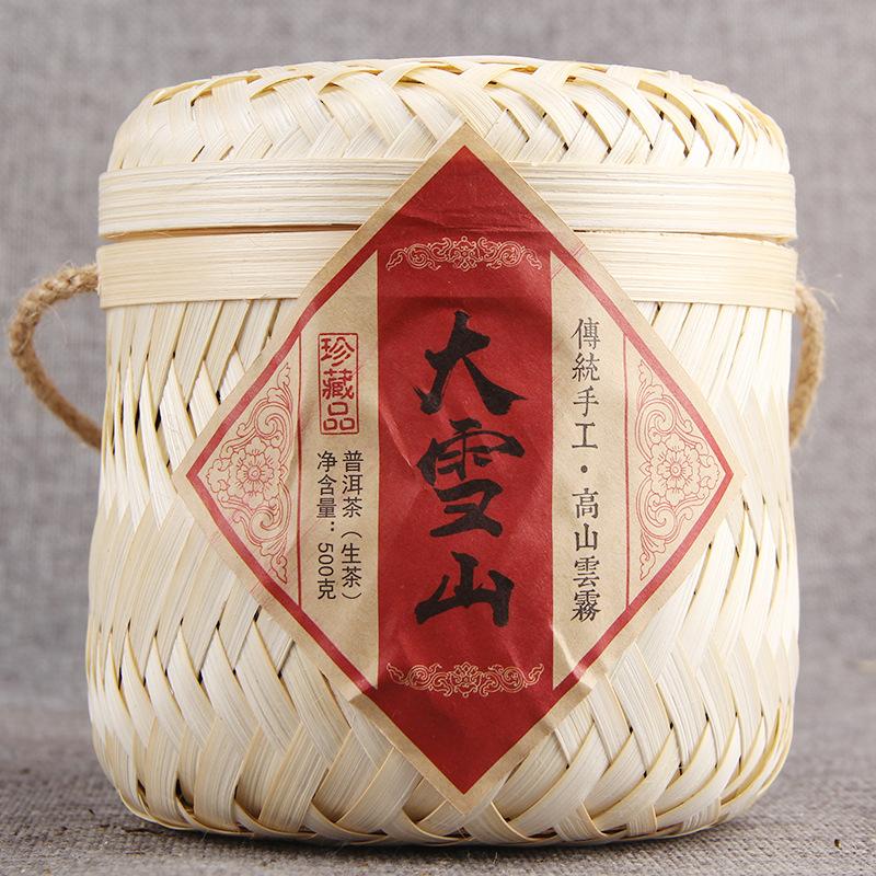 プーアル茶生茶の伝統的な手作り生普2019大雪山古木500グラム手作り竹かごに茶柱を入れる