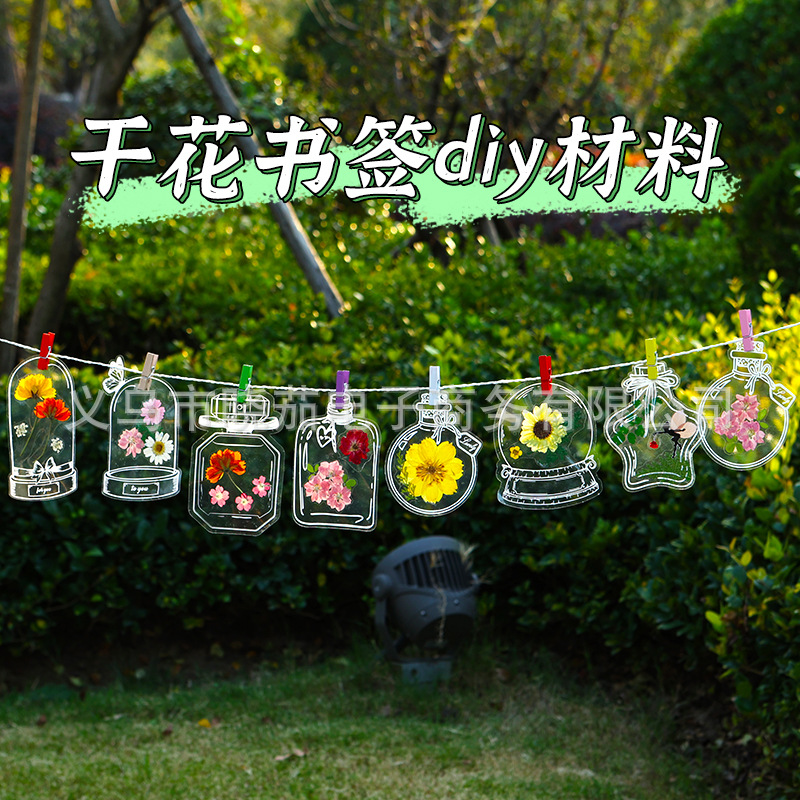 透明ブックマーク手作りdiy材料自作ドライ花エンボス木の葉標本プラスチックフィルム収集瓶の中の秋
