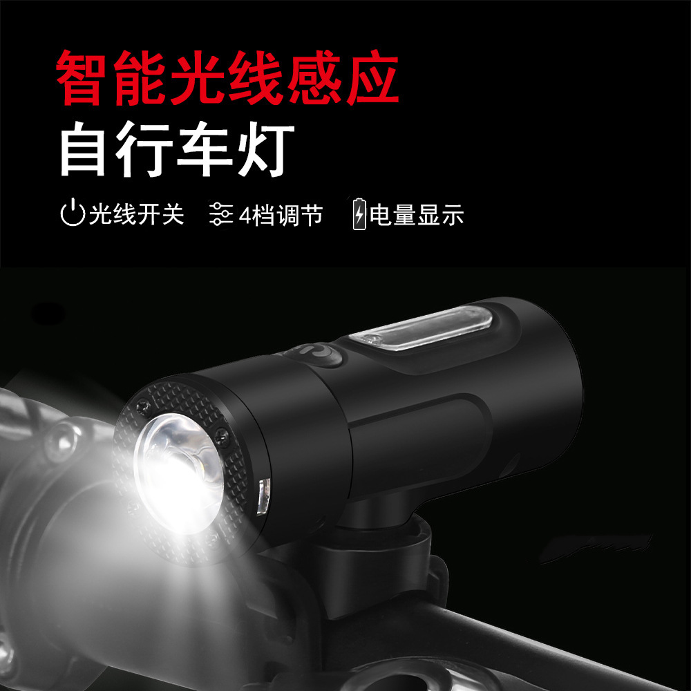 クロスボーダー新型自転車ライトヘッドライトType-C充電アウトドア防水スマート光感スクリーン夜自転車サイクリング
