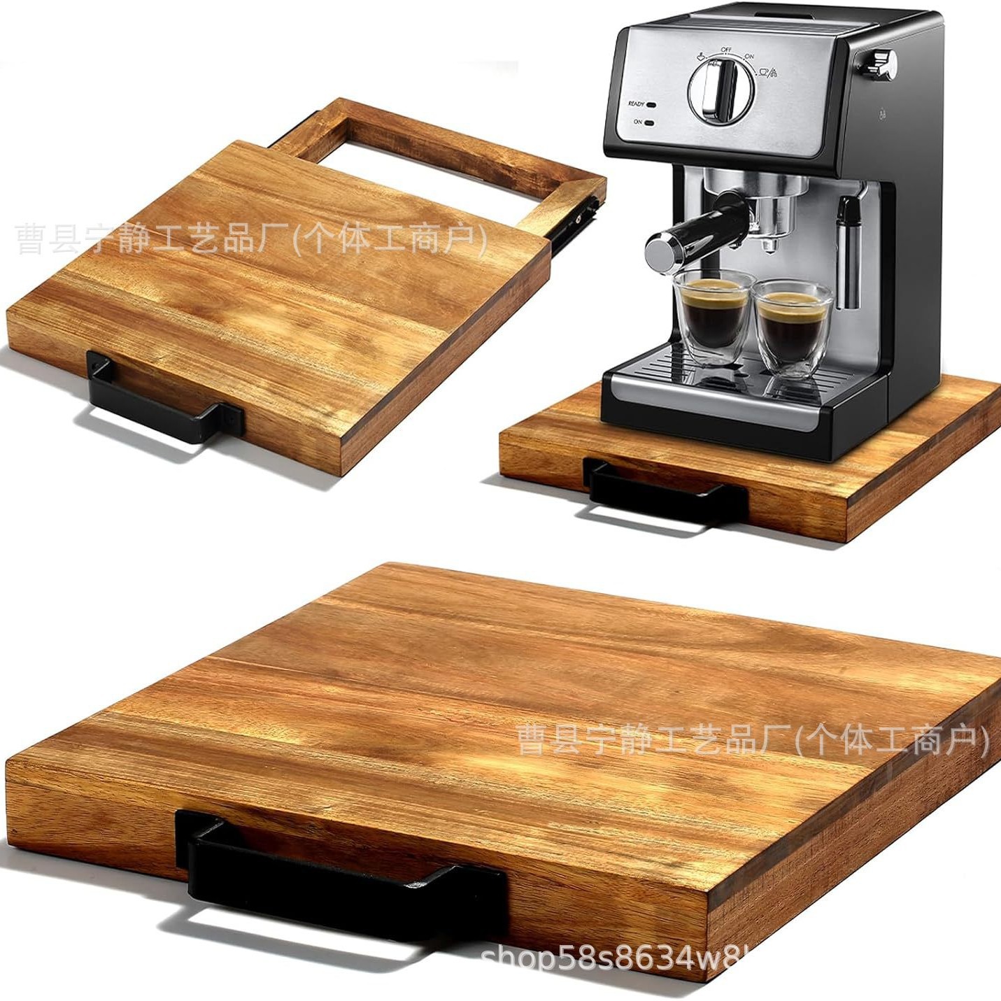 木製コーヒーマシントレイキッチン収納電気器具スライドトレイベースコーヒーマシンベースデスクトップ収納皿