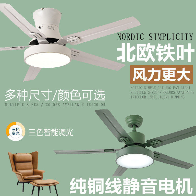 北欧レストランファンライト鉄の葉強風超静音シーリングファンライトホームリビングルーム寝室ファン一体型ライト