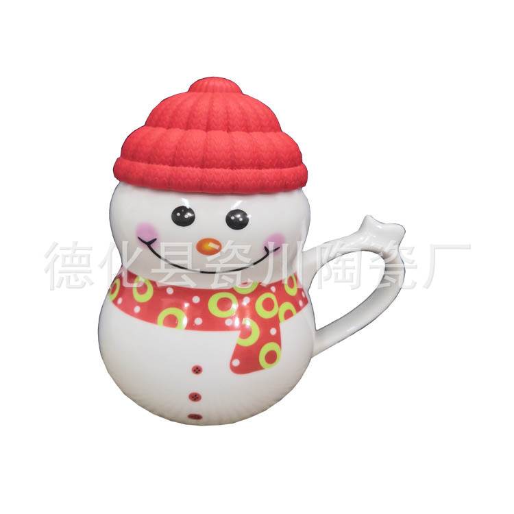 クリエイティブクリスマス陶磁器カップクリスマス雪だるまシリコンプラスチック帽子蓋オフィスマグカップサンタクロース漫画カップ
