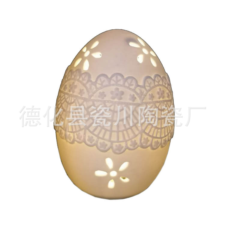 現代陶磁器のイースター卵の高級な白い磁器のledランプの光を通す卵のウサギの家の置物の祝日の小さい贈り物
