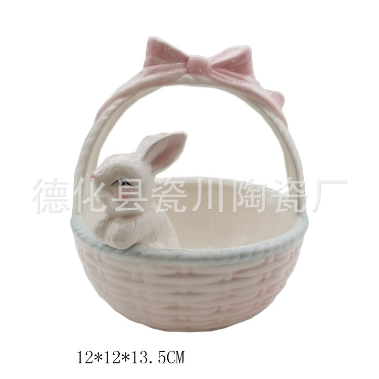 陶磁器の工芸品のイースターのウサギのかごの家の置物のウサギの皿のウサギの碗のウサギの巣のウサギの抱っこの鉢