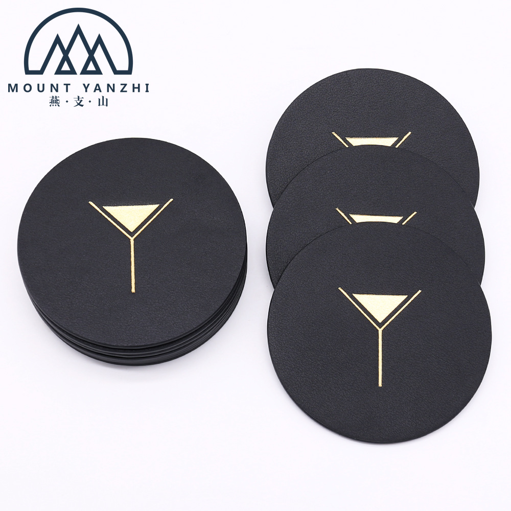 高級皮質カップマット耐高温滑り止め円形puマットコーヒーカップ断熱マットはロゴを印刷できます