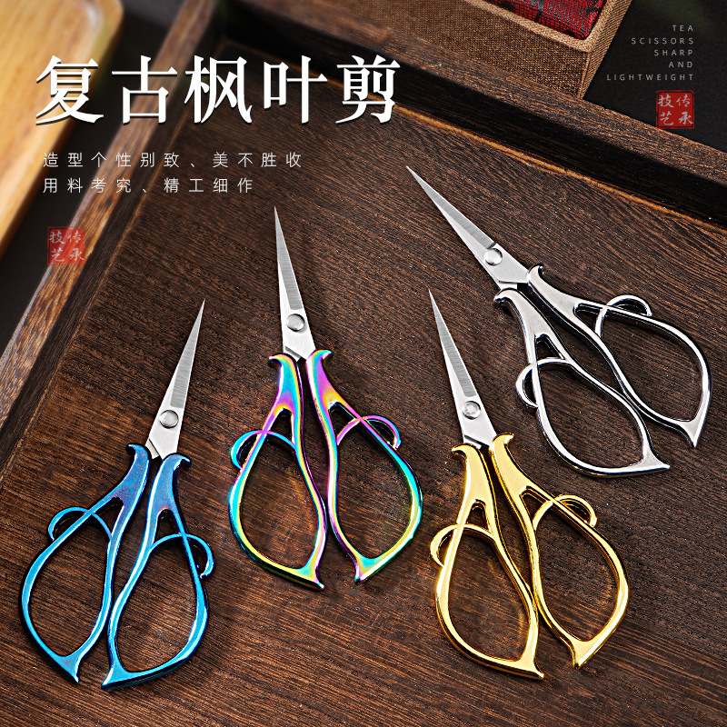 レトロなカエデの葉のステンレスの小さいハサミの鋭利な茶の葉は裁縫の十字の刺繍の糸の頭を切って多目的の手で切って切ります。