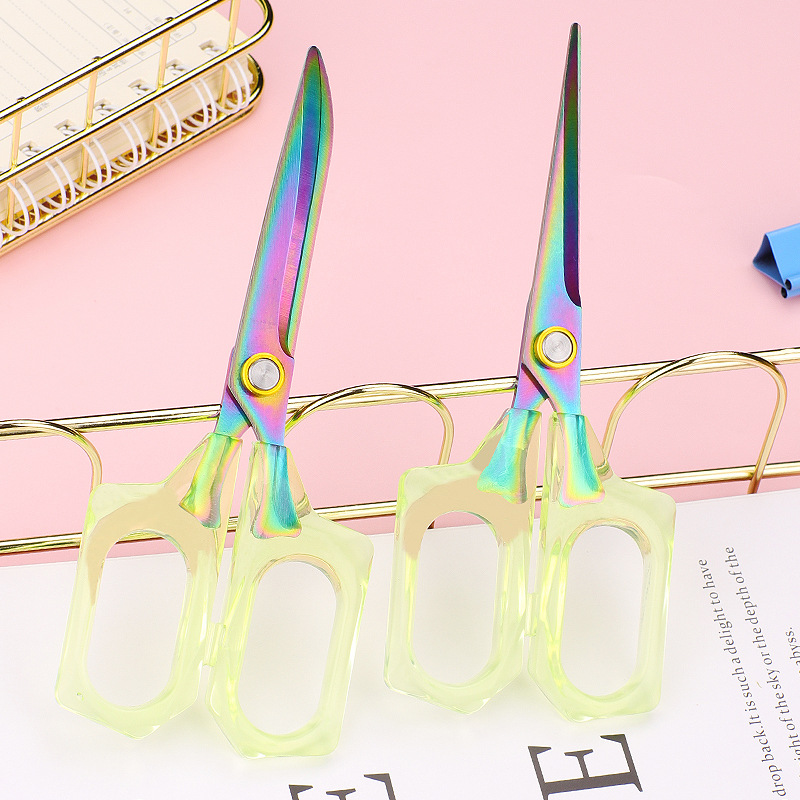 クリエイティブシンプル風学生文房具カットオフィスカット家庭用ステンレス半透明グリーン手作りカット紙小ハサミ