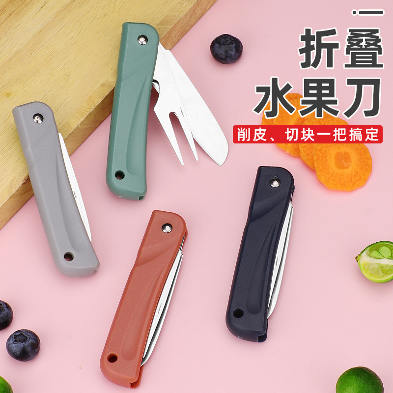 キッチン家庭用ステンレス折りたたみフルーツナイフ栓抜き付きフォーク付きポータブル洗浄しやすい多機能フルーツ削り器