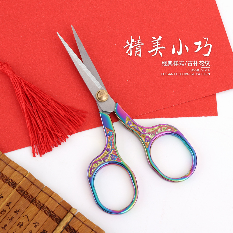 窓の花の十字の刺繍の小さいはさみのティーバッグのはさみの梅の花の復古家庭用ステンレスのはさみの学生の事務の手作りのはさみ