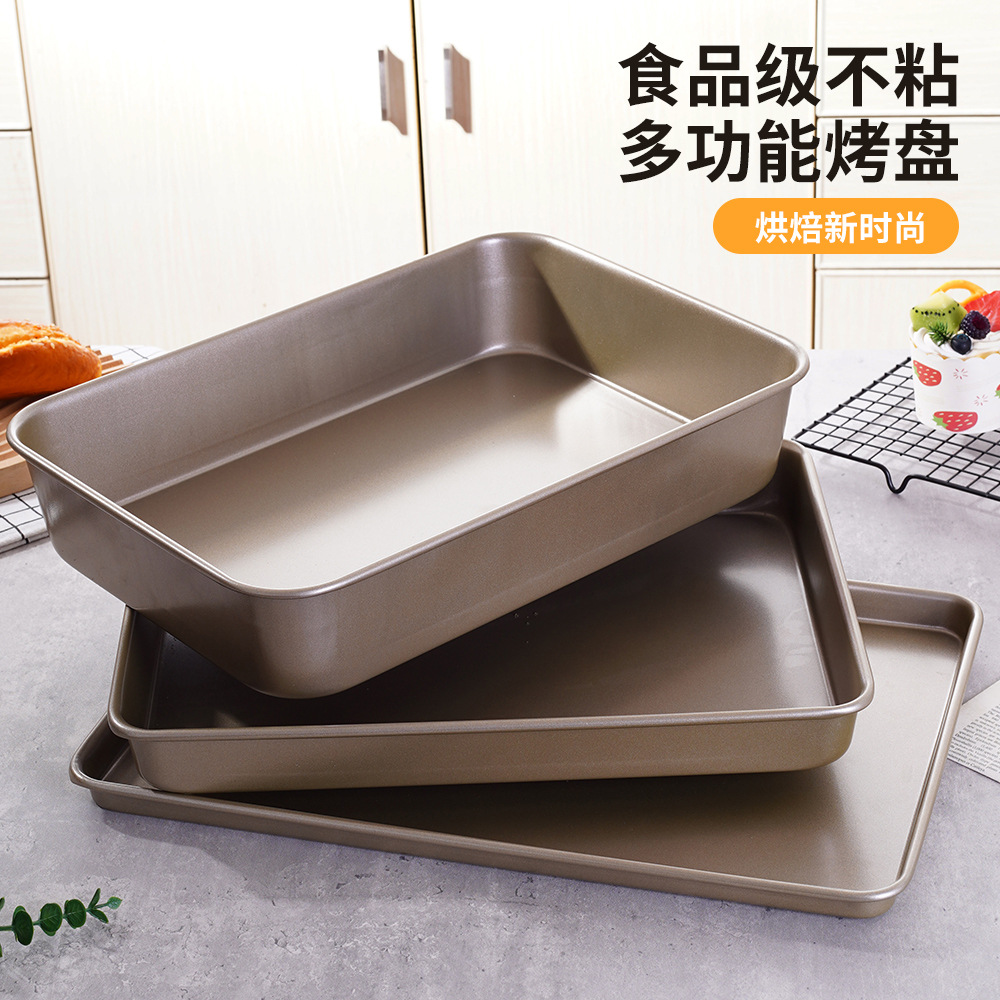 国境を越えたアマゾンは、10インチの金色の長方形の焼き皿炭素鋼がケーキ型の腸粉焼き皿にくっつかない