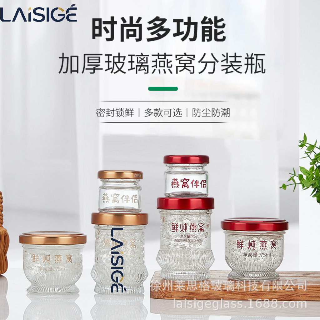 スポット卸売新鮮な煮込みツバメの巣ボトル蜂蜜ボトル空ボトル食品グレード透明ガラス詰め替えボトル印刷可能なロゴ包装