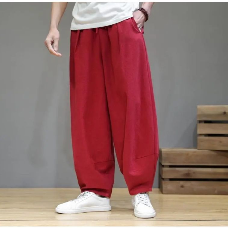 中国風メンズリネンカジュアル長ズボン男性ゆるいハーレムパンツ大サイズ中国式レトロワイドパンツ