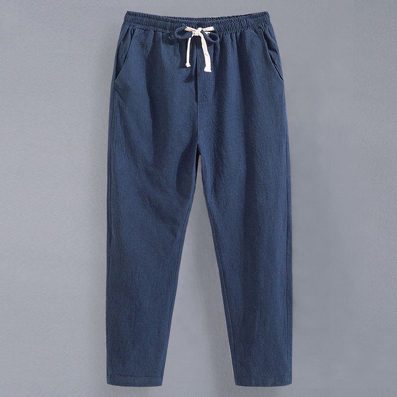 亜麻の9分のズボンの男性の綿麻のハーレムのズボンのゆったりしている大きいサイズのカジュアルなズボンの夏の薄いタイプのストレートなズボンの潮流