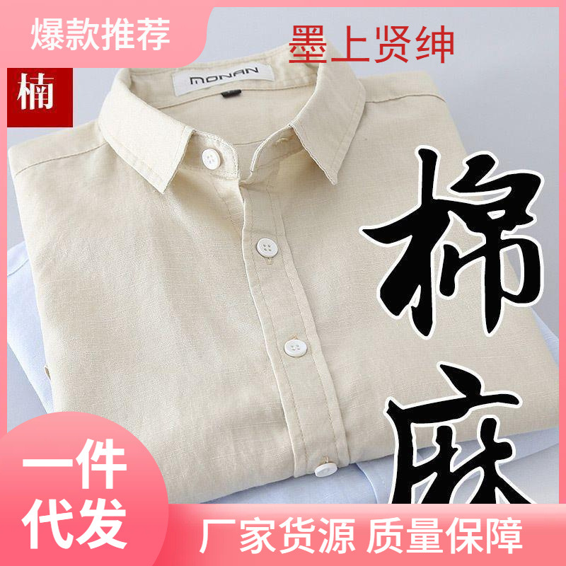 夏の亜麻シャツ男七分袖ゆったりカジュアル中袖綿麻シャツ麻上着男性半袖シャツ