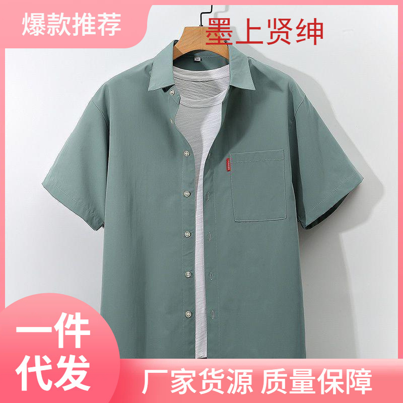 デブ日系工装半袖シャツ男性大サイズカジュアル服純色シンプルシャツ