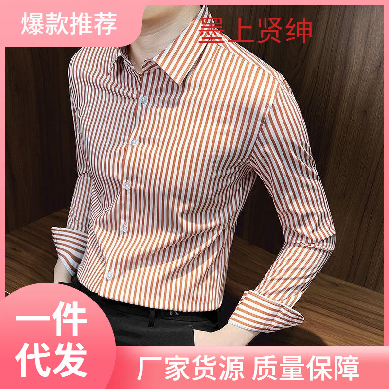 縦縞シャツ男性長袖2023新ビジネス男性服インチシャツ感修身男性シャツ