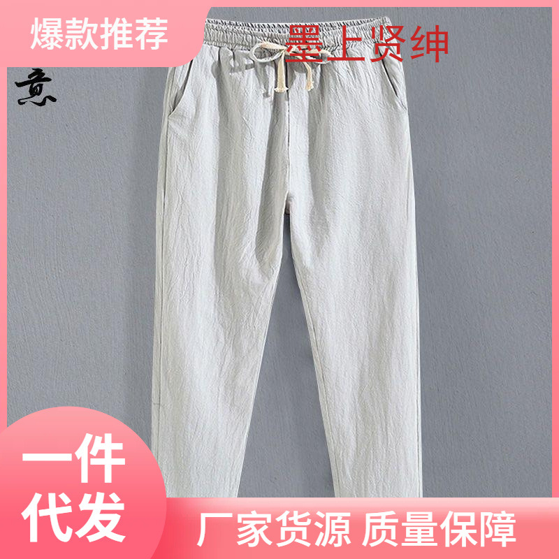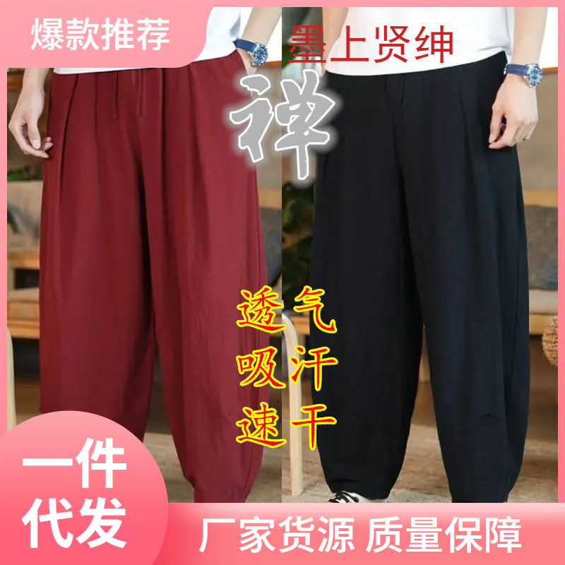 禅修禅意長ズボン大サイズ居士服春夏新作綿麻紳士服ハーレンカジュアルランタンパンツ中国風