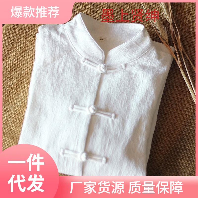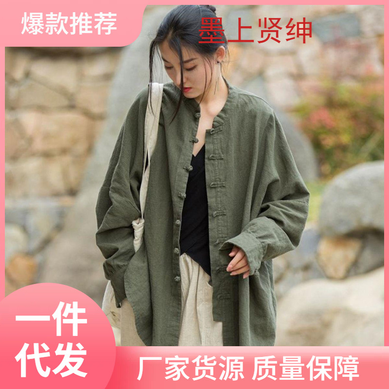 女装民国風唐装中国風盤ボタン上着中国風対襟長袖綿麻シャツ立襟中山服