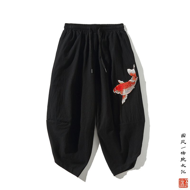 中国風仙鶴刺繍亜麻ズボン男春秋新作束足ハーレムズボンゆったり大きいサイズカジュアル長ズボン