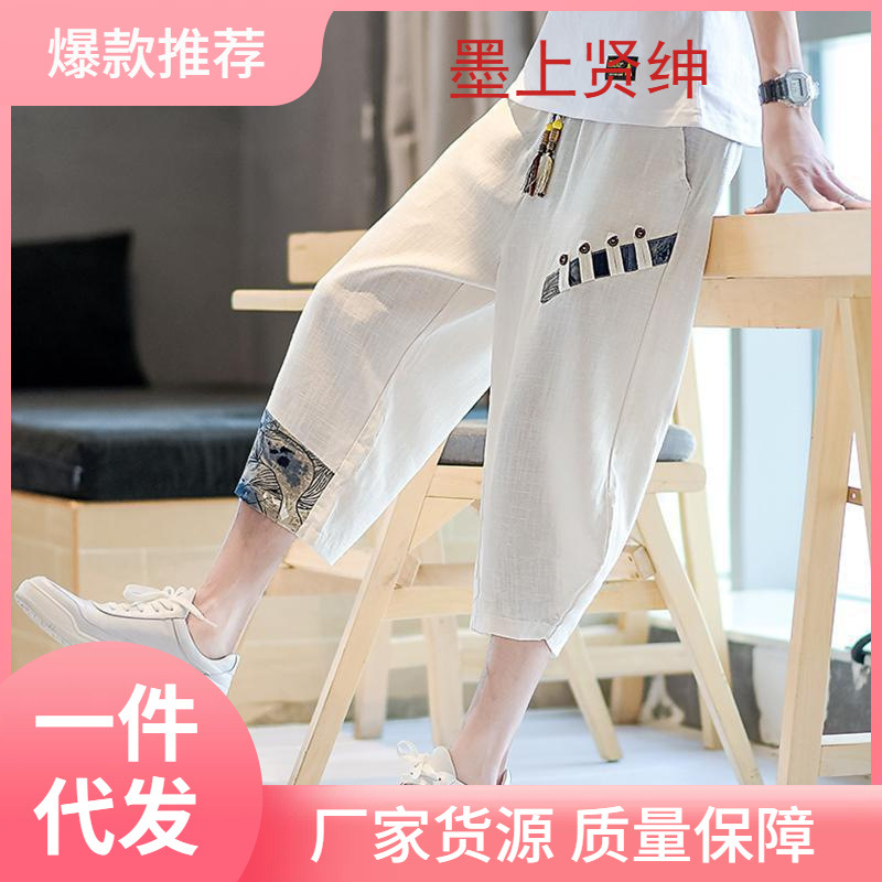 中国風七分ズボン男性夏の薄いファッションブランドのゆるいパンツ国潮2023新型カジュアルパンツ