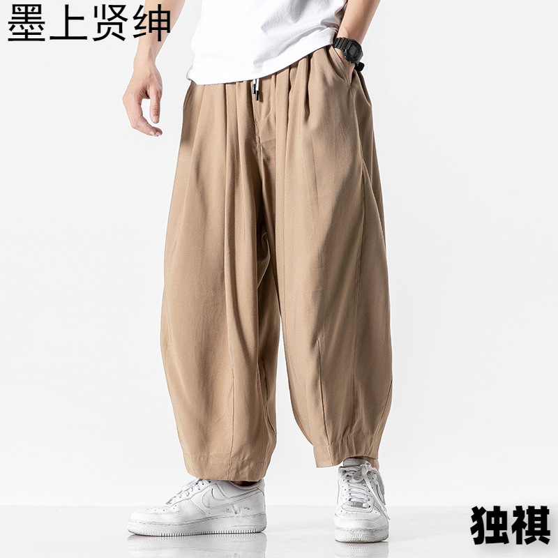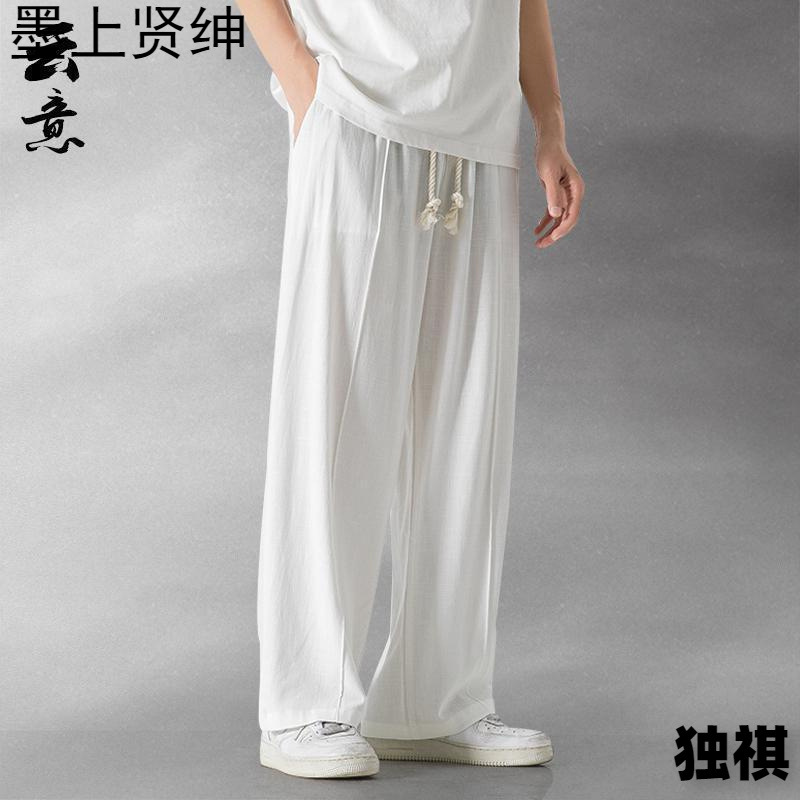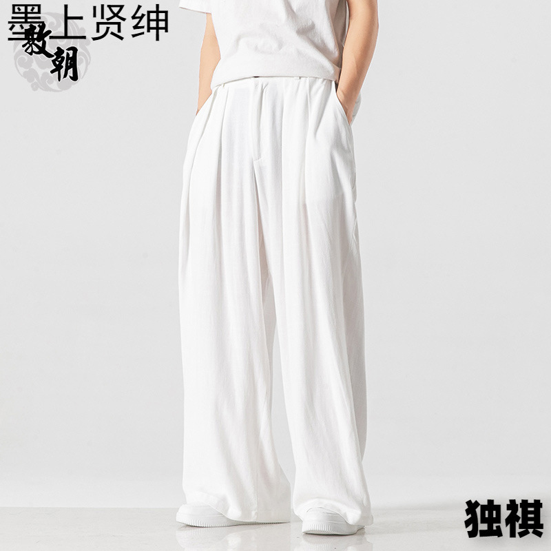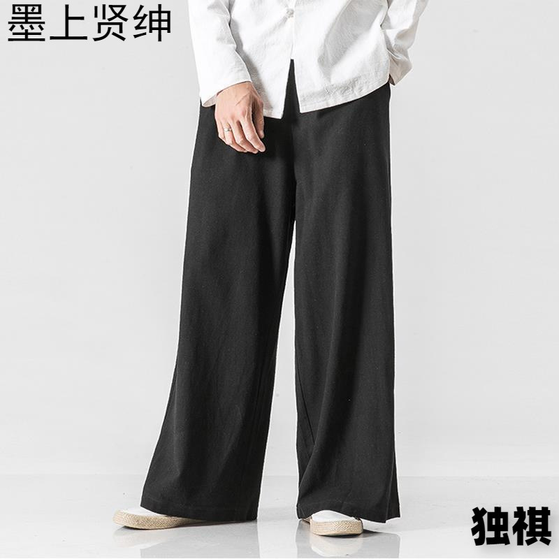漢服仙気垂感亜麻ズボン男性直筒カジュアル長ズボン中国風ゆるい大サイズ古着広脚宋ズボン