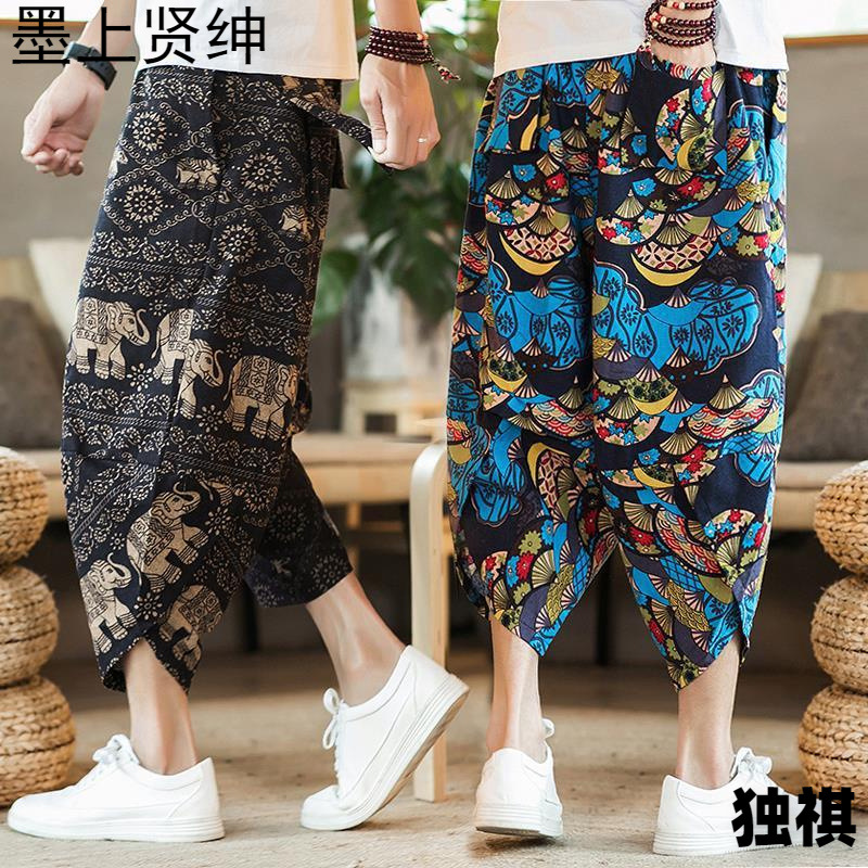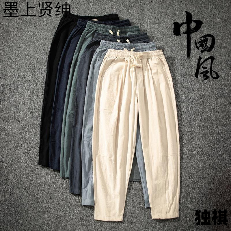唐装漢服夏の中国風の薄い亜麻の9分の綿の麻のズボンのゆったりしている小さい足の麻のズボンの男性のズボンの古風な潮