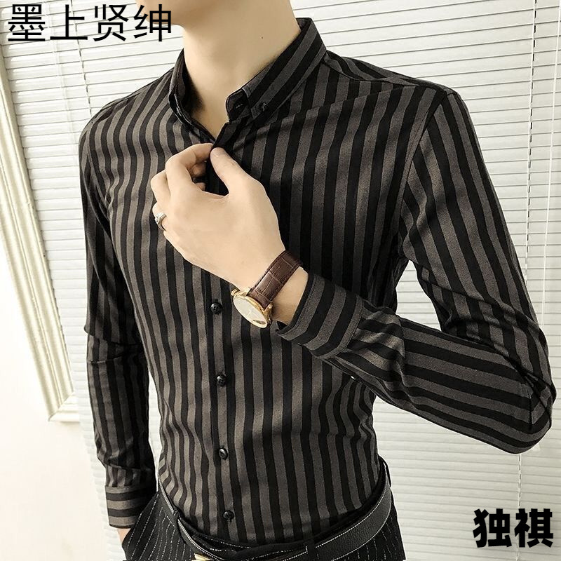 2023春秋服新型ビジネスカジュアル長袖シャツ男性修身ストライプシャツ職業寸シャツコート男