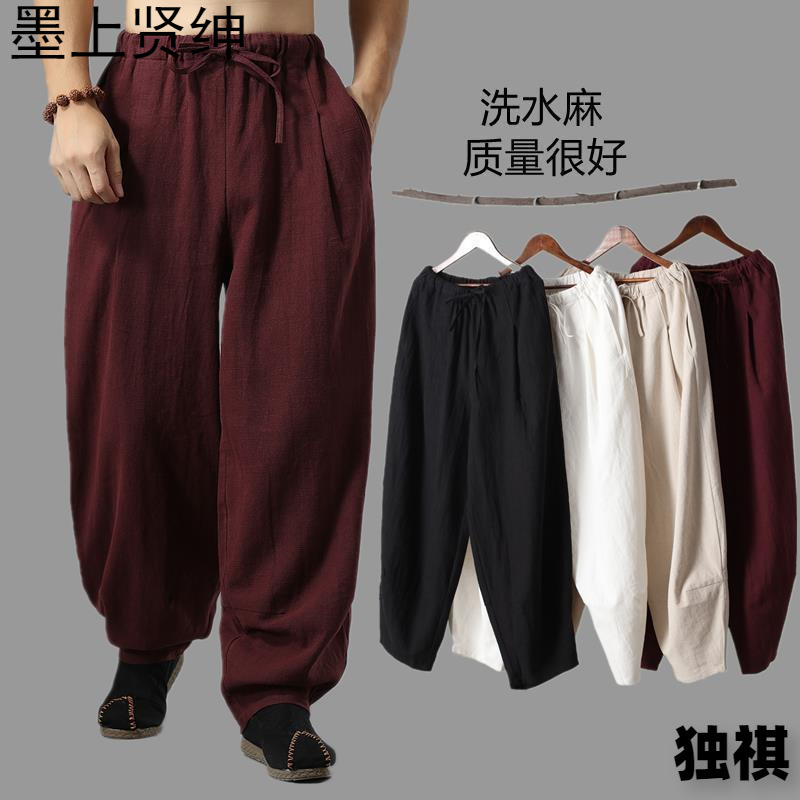 ゆったりとした広脚の灯籠ズボン春と秋の新型綿麻男服カジュアル中国風亜麻布居士服長ズボン