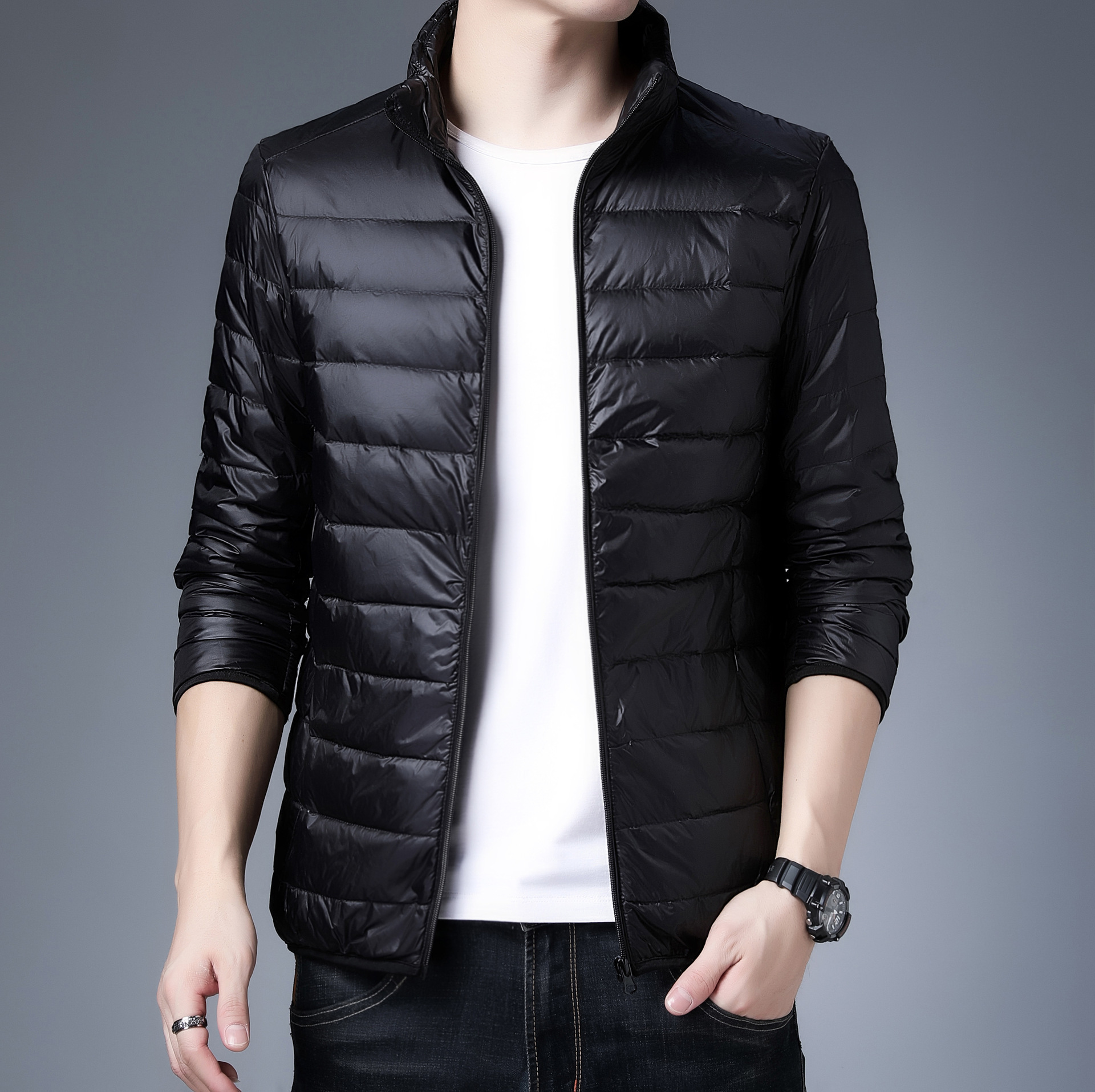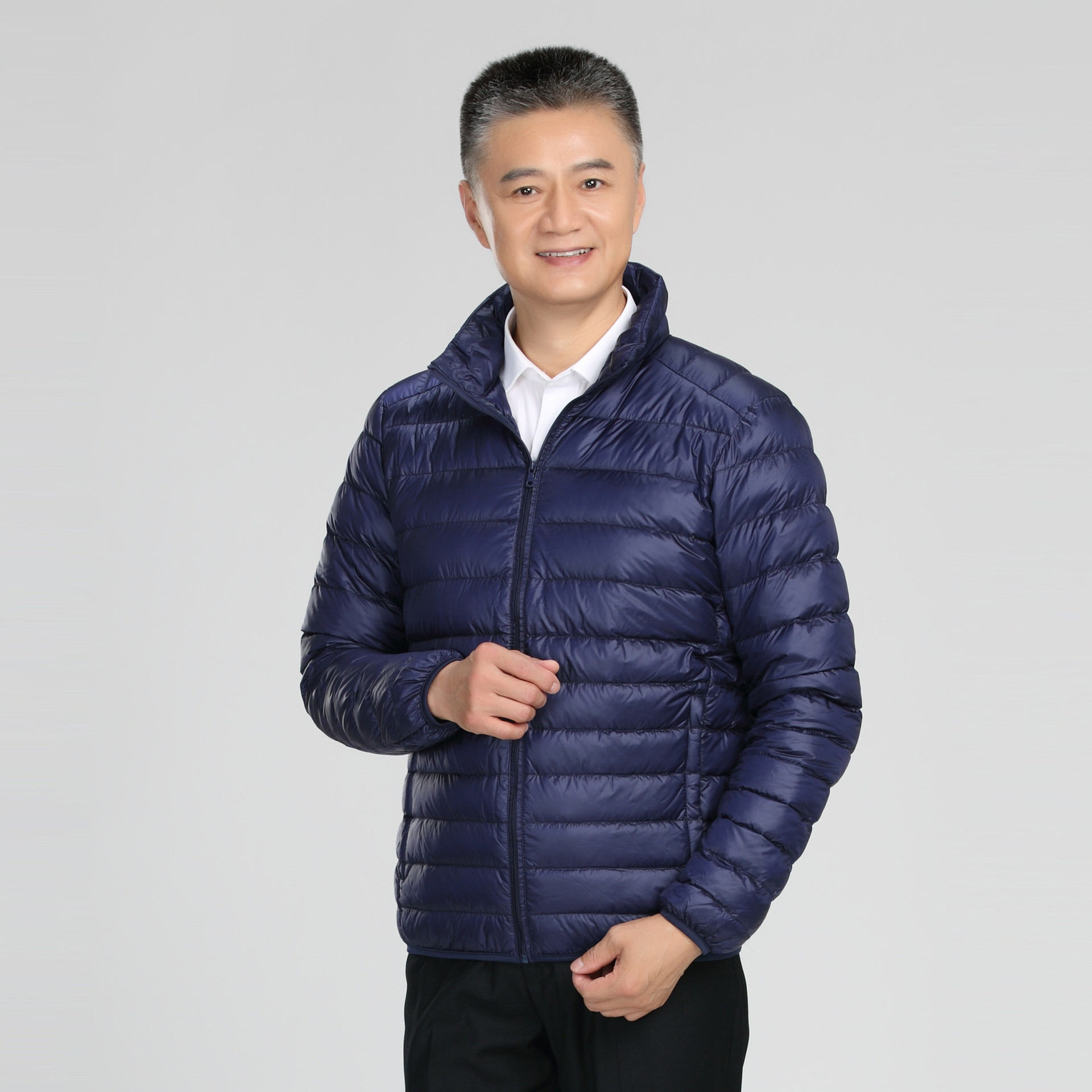 中高年の軽薄ダウン綿服男性2023新型立襟大サイズのショートタイプのお父さんは軽やかで暖かいコートを着ています。