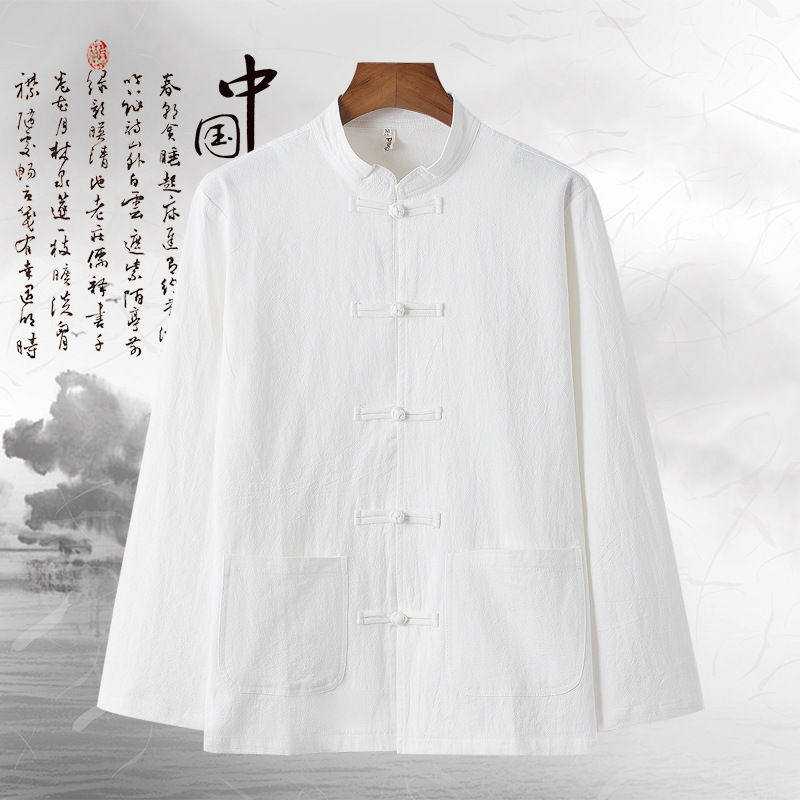中国風男漢服おじいさん唐装仏系男装禅服綿麻シャツ復古中国式伝統民国服装