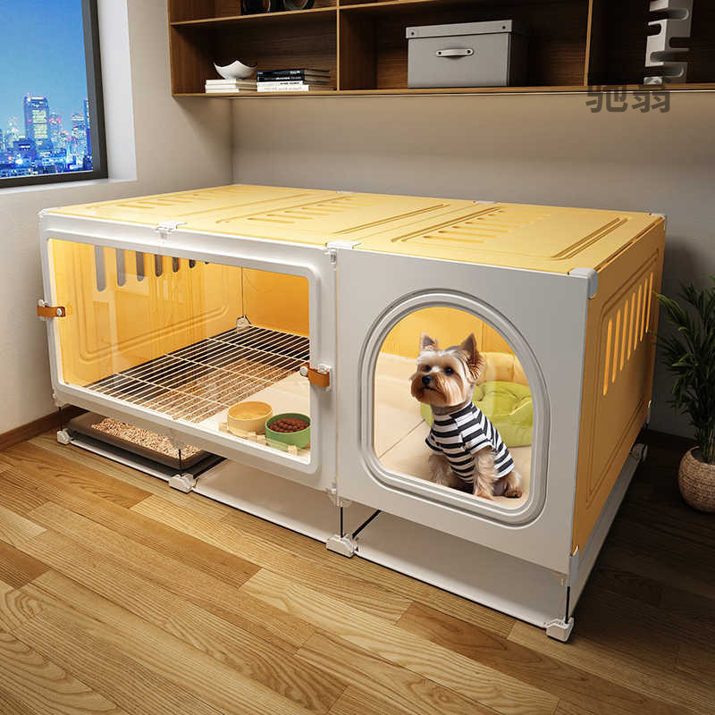ペット犬ケージ、トイレ付き小型犬用分離犬小屋、1部屋、1リビングルーム、1バスルーム、トイレ一体型犬用ヴィラ