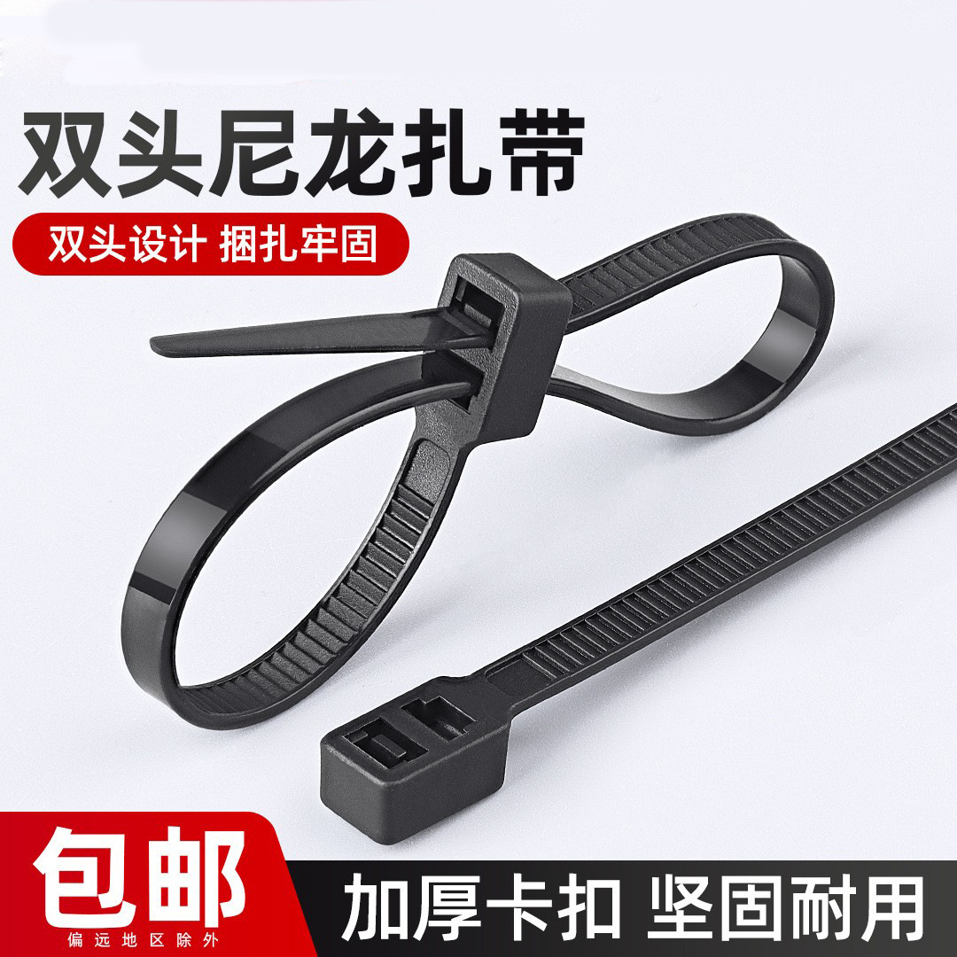 メーカー直供双ボタン結束帯双頭ナイロン結束帯4.8*200黒色双穴セルフロック式ナイロン結束帯