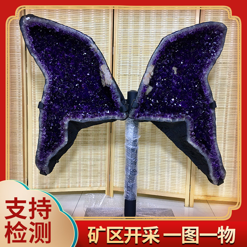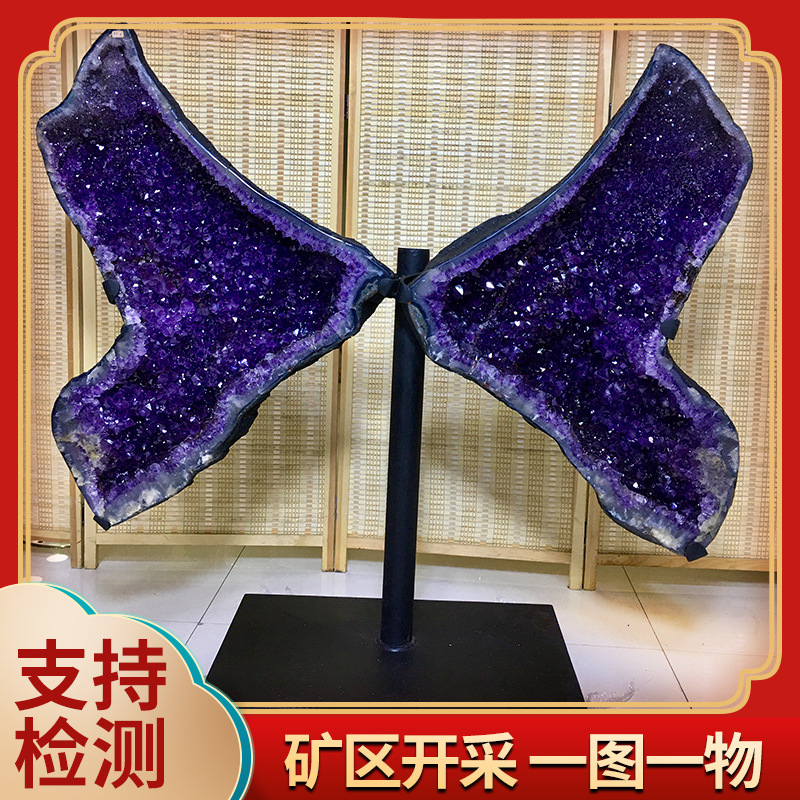 ブラジルの紫晶「蝶」の穴に水晶工芸品の置物があります。