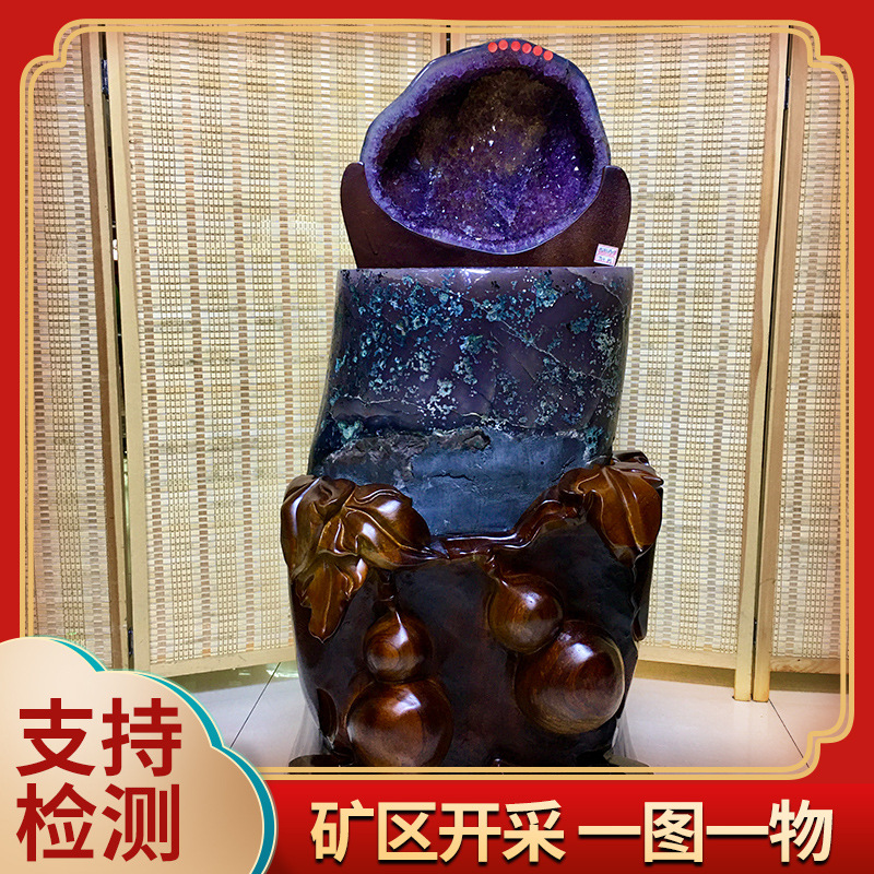 ブラジル満チタン晶紫晶洞置物天然紫晶洞原石置物聚宝盆一図一物