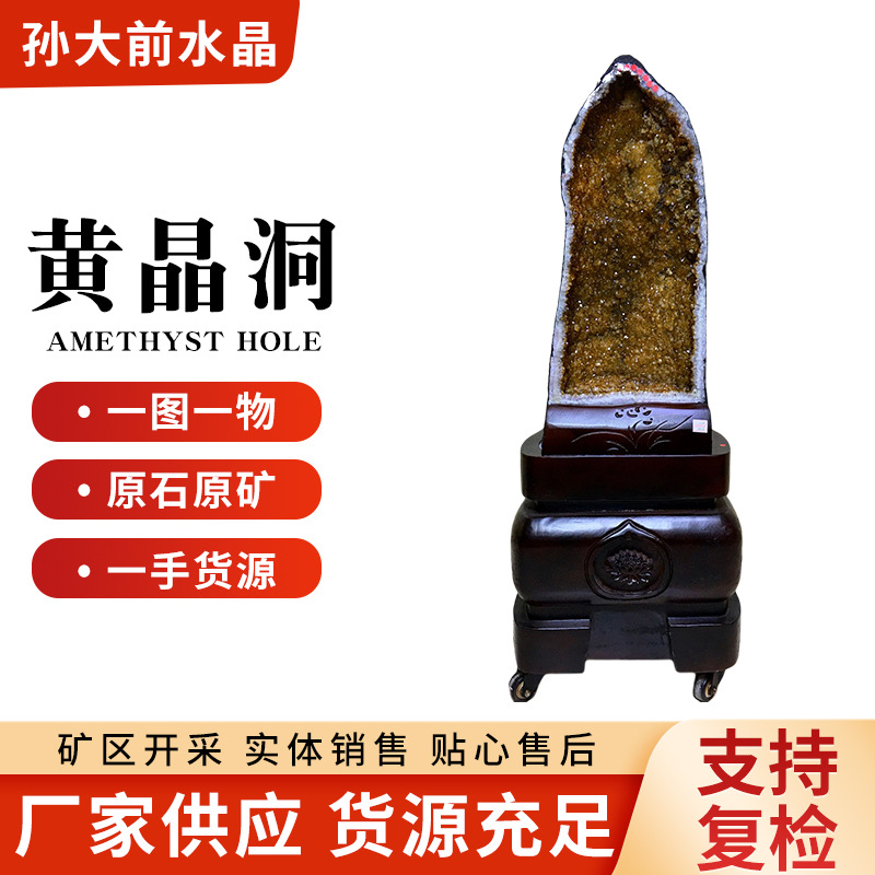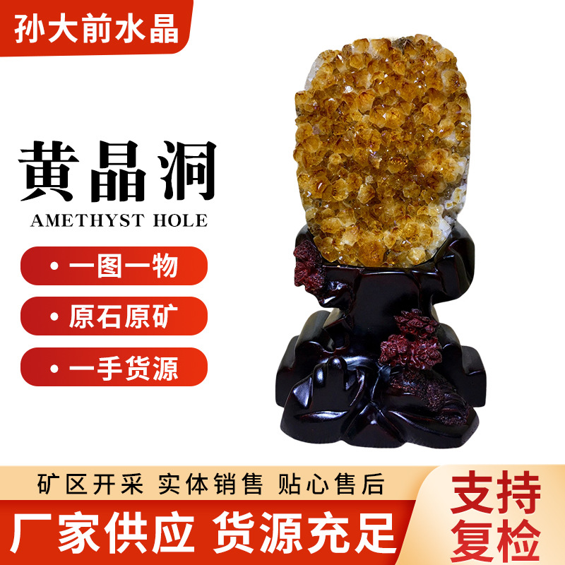 天然黄水晶洞原石置物銭袋聚宝盆消磁黄晶洞オフィスオープン玄関問屋