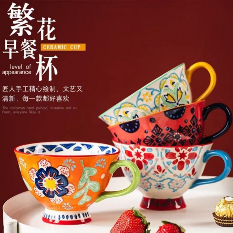 アメリカの手描きの朝食カップの個性の潮流の大容量は蓋のコーヒーのオートミールのマグカップの牛乳のコップの卸売りを持ちます。