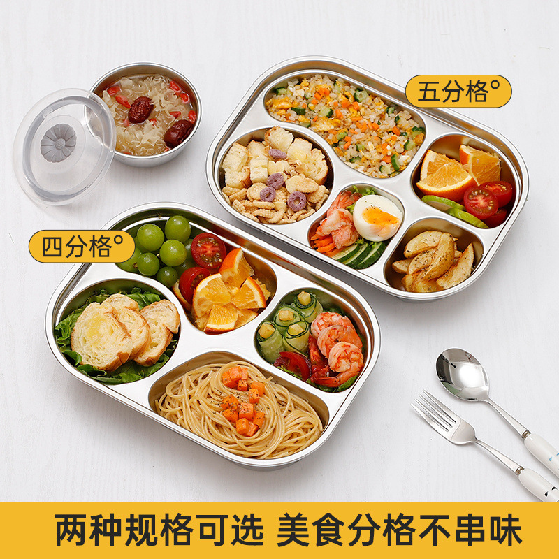 食品グレード 316 スクエアステンレス鋼ファーストフードプレート大人と学生のための分割された従業員食堂ランチボックス大人のための蓋付き