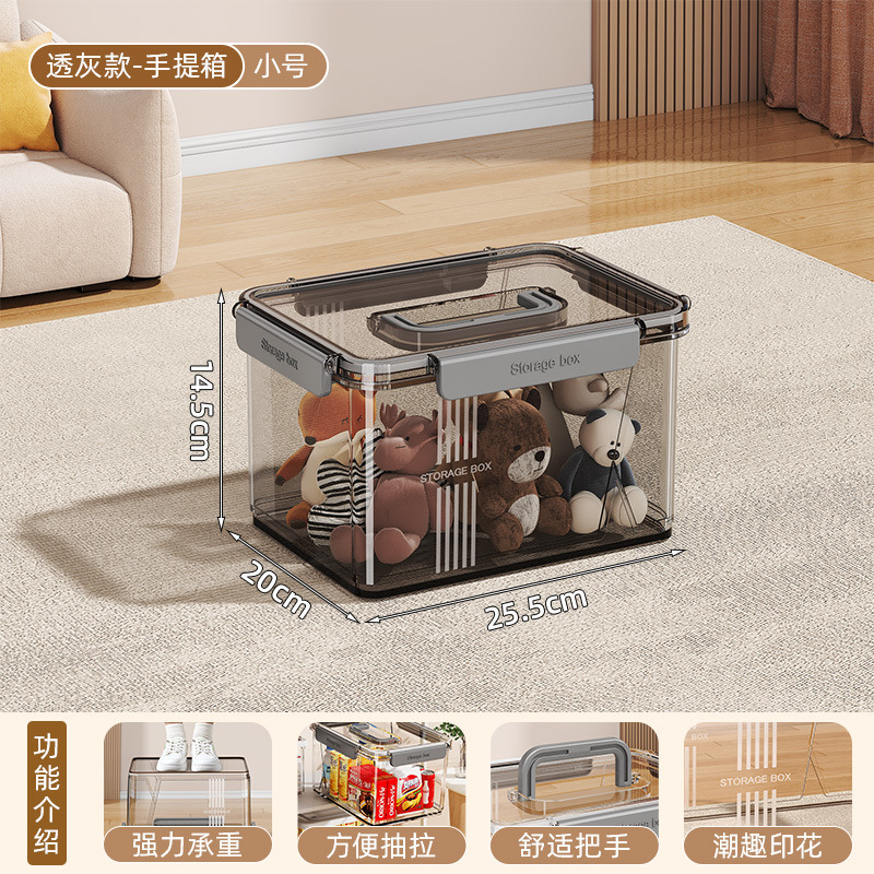 ポータブルPET透明収納ボックス家庭用厚手服玩具スナック本大容量整理ボックス収納バスケット