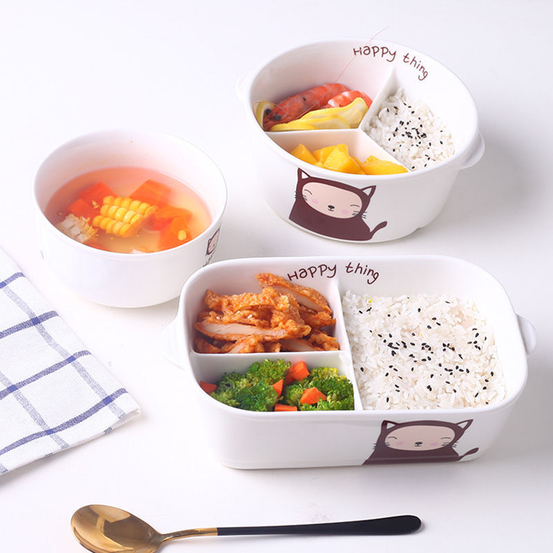 電子レンジ加熱弁当箱、蓋付きコンパートメント、サラリーマンや学生向けの陶器製弁当箱、スープ付きポータブル鮮度保持ボウル